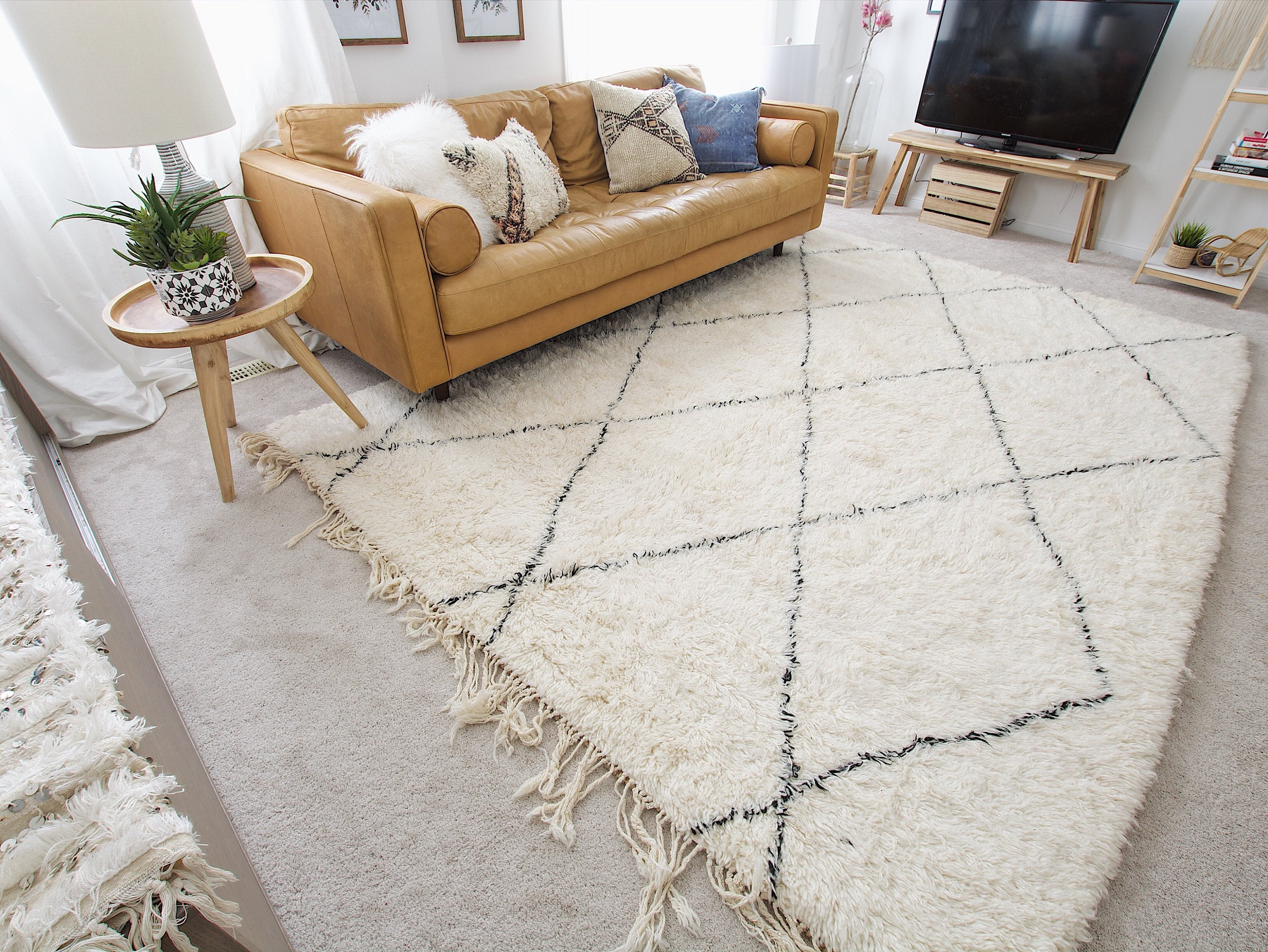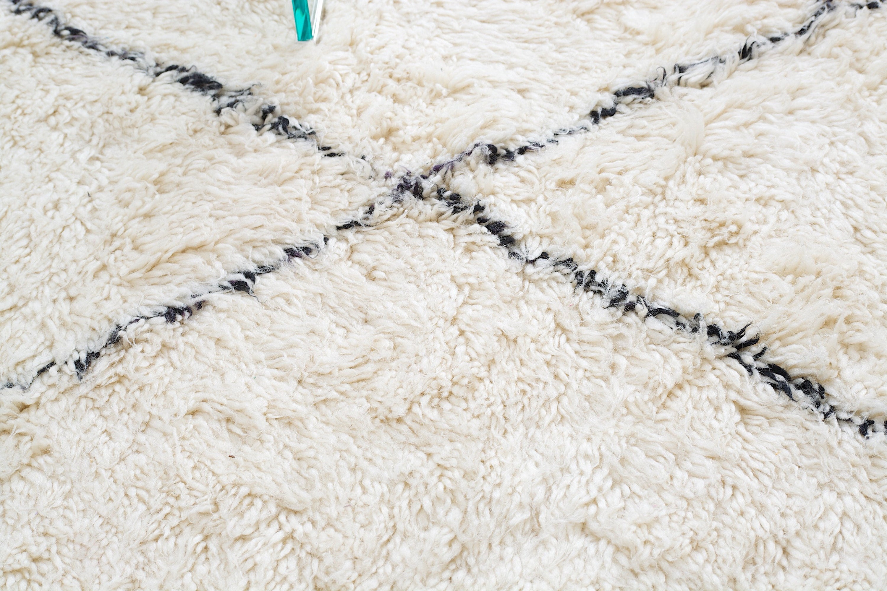 Most ancient beni Ourain designs are woven with natural black or dark brown wool into the cream base.